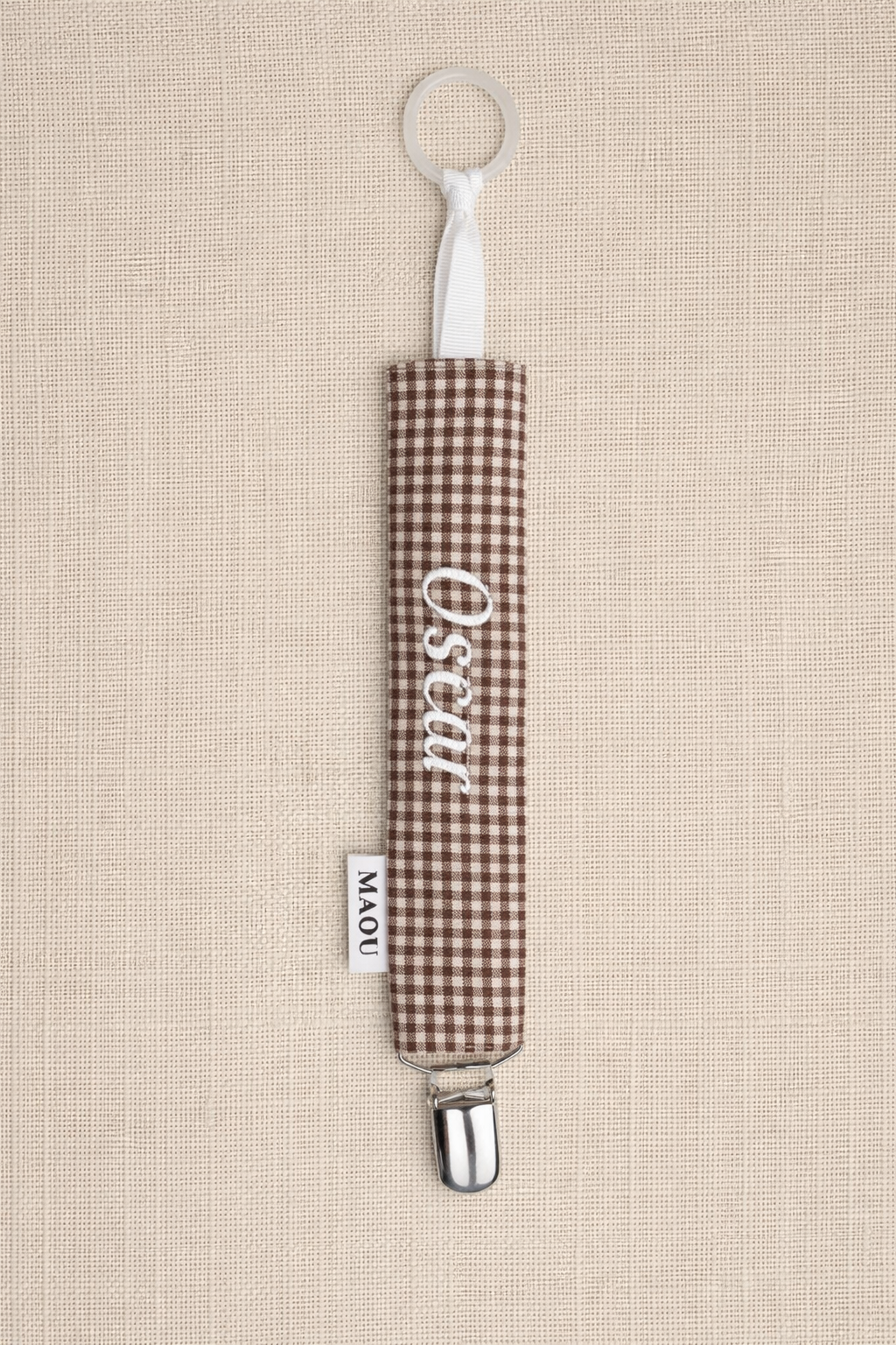 PACIFIER CLIP BROWN GINGHAM